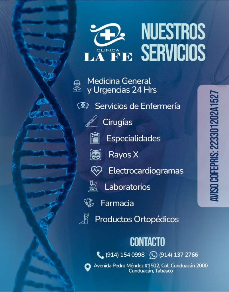 “En Clínica La Fe, entendemos que tu salud y la de tu familia son lo más importante. Nacimos con la misión de cerrar la brecha de especialización en Cunduacán, Tabasco, reuniendo en un solo lugar a los mejores médicos especialistas del estado.